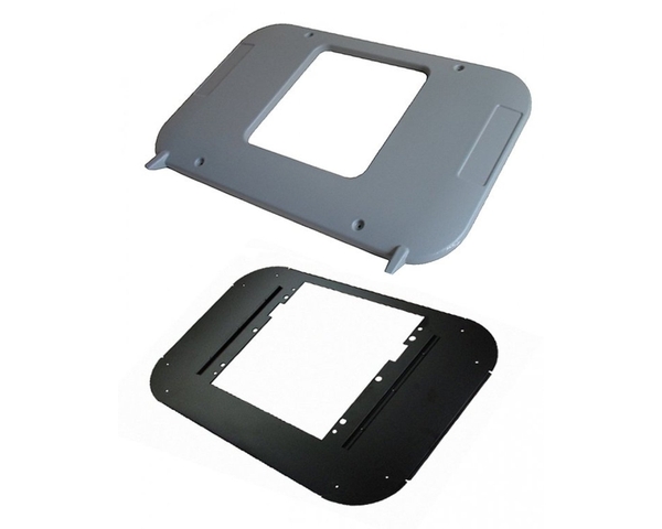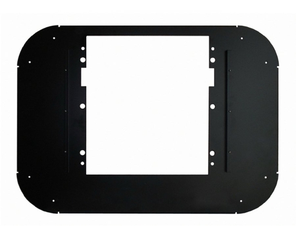 Стальная черная монтажная плита с приклёпанными направляющими (длина-560 мм; ширина-760 мм ; размер окна: длина-410 мм ширина-353 мм; масса приблизительно 3 кг).