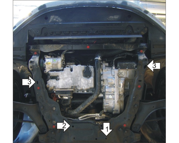 32603 MOTODOR Защита двигатель, КПП, РК алюминий 5 мм. Количество щитов 1 / Вес защиты 8,04кг. Для автомобиля Ford S-Max/ Mondeo/ Galaxy 2006> V=1,8 2,0