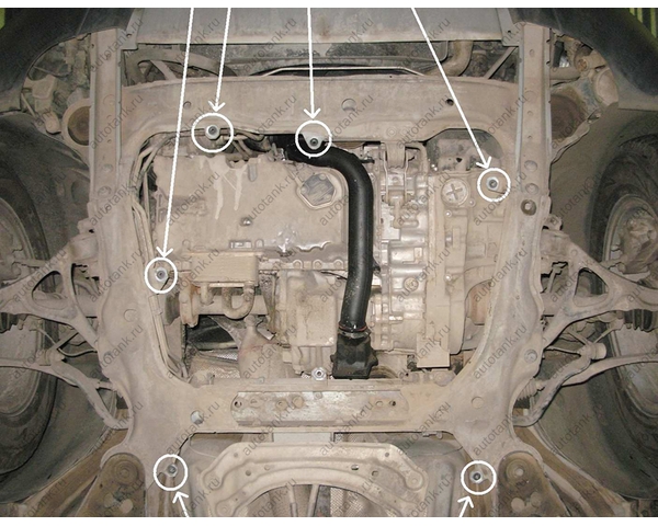 Крепления передней части защиты:
